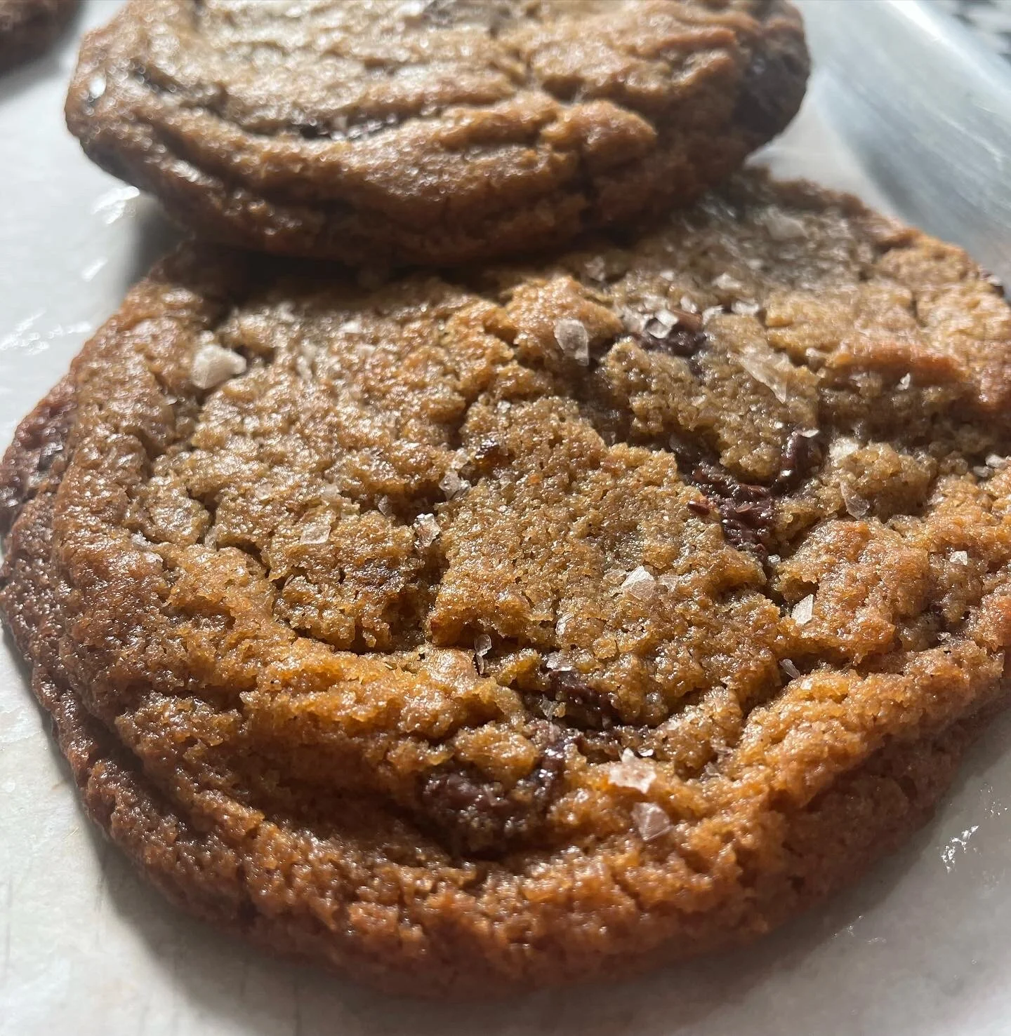 10 Half Size Take n’ bake tahini chocolate chip cookies! Served with side of flaky smoked sea salt. Smaller version so you can share with friends and fam!